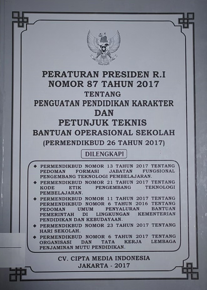| Judul | Peraturan Presiden Ri Nomor 87 Tahun 2017 Tentang Penguatan Dan Pendidikan Karakter Dan Petunjuk Teknis Bantuan Operasional Sekolah |